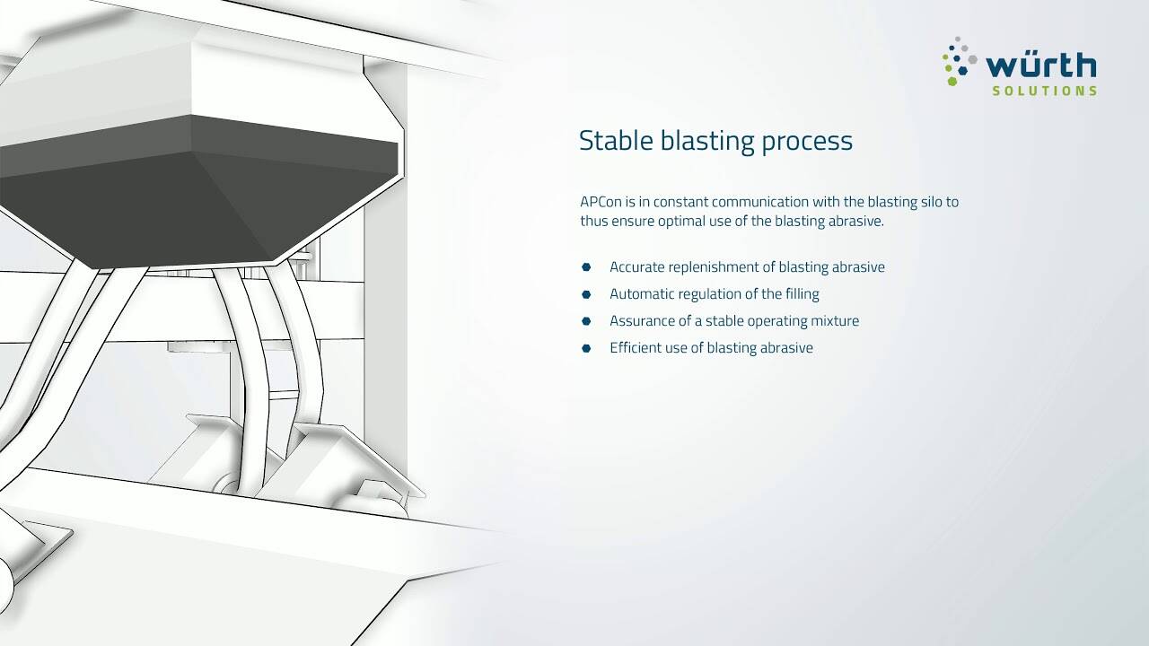 With APCon, we offer you a process optimisation system with which you can monitor and control your blasting system online. In future, you will have both important key figures for consumption, and complete documentation, real time analyses and much more available at a glance. So, by continual optimisation, you can increase your productivity and make the blasting process very economical.